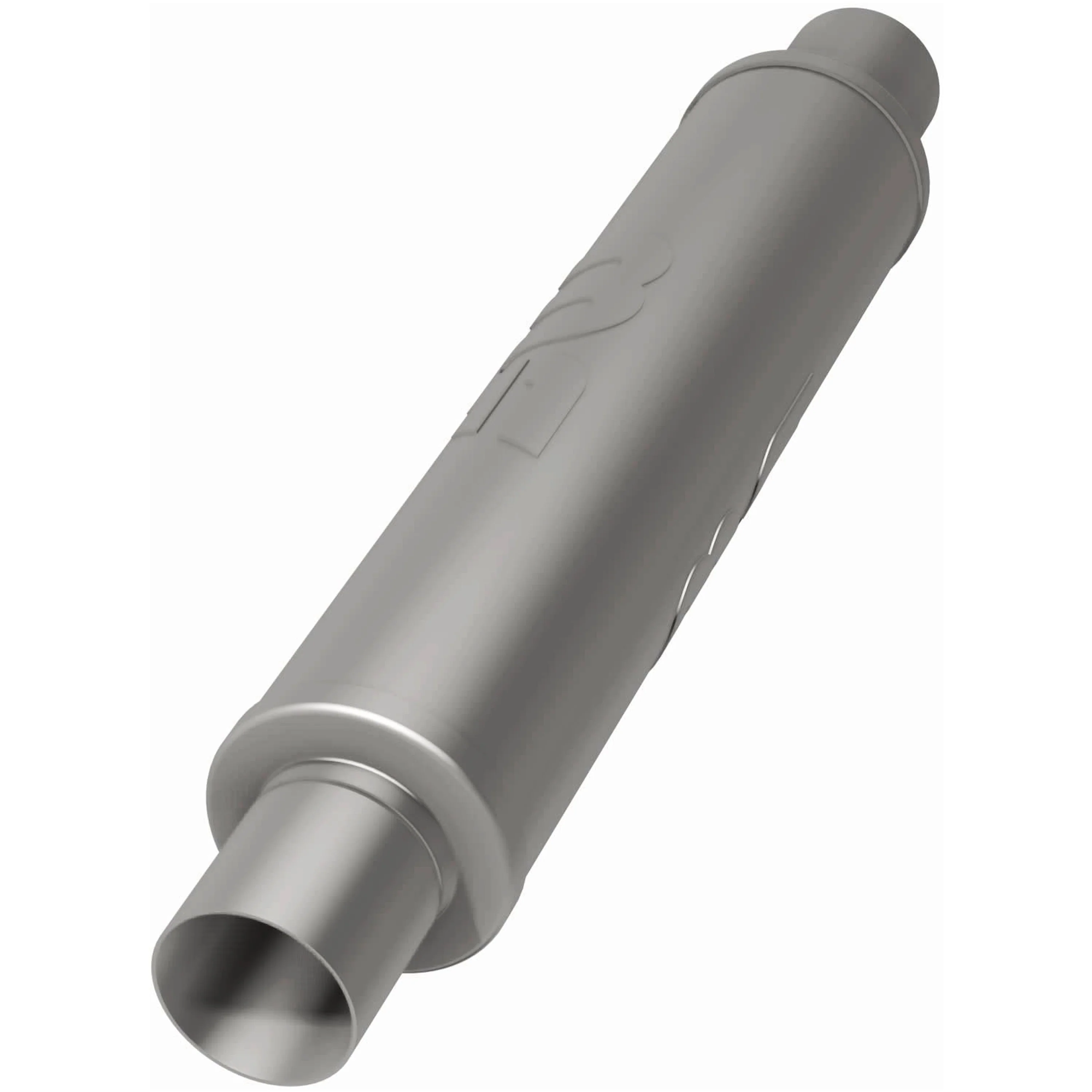 The MagnaFlow 4in. Round Straight-Through Performance Exhaust Muffler 10426 brings our world-famous exhaust sound and dyno-proven performance to your ride in a weight-optimized 4x4x18in. package with a premium satin finish. The straight-through free-flowing design of this round-bodied muffler's reversible, universal 2.5/2.5in. diameter inlet/outlet layout enables versatile installation options to match the spacing requirements of your vehicle. Due to the cutting and welding involved, professional installation is highly recommended. Internally, 10426 utilizes a perforated stainless steel core wrapped in stainless steel mesh and acoustic fiber fill to achieve a powerful, resonant tone. This muffler is made of durable, corrosion resistant stainless steel and produced using cutting-edge CNC precision robotic manufacturing techniques, all backed by MagnaFlow's limited lifetime construction warranty.