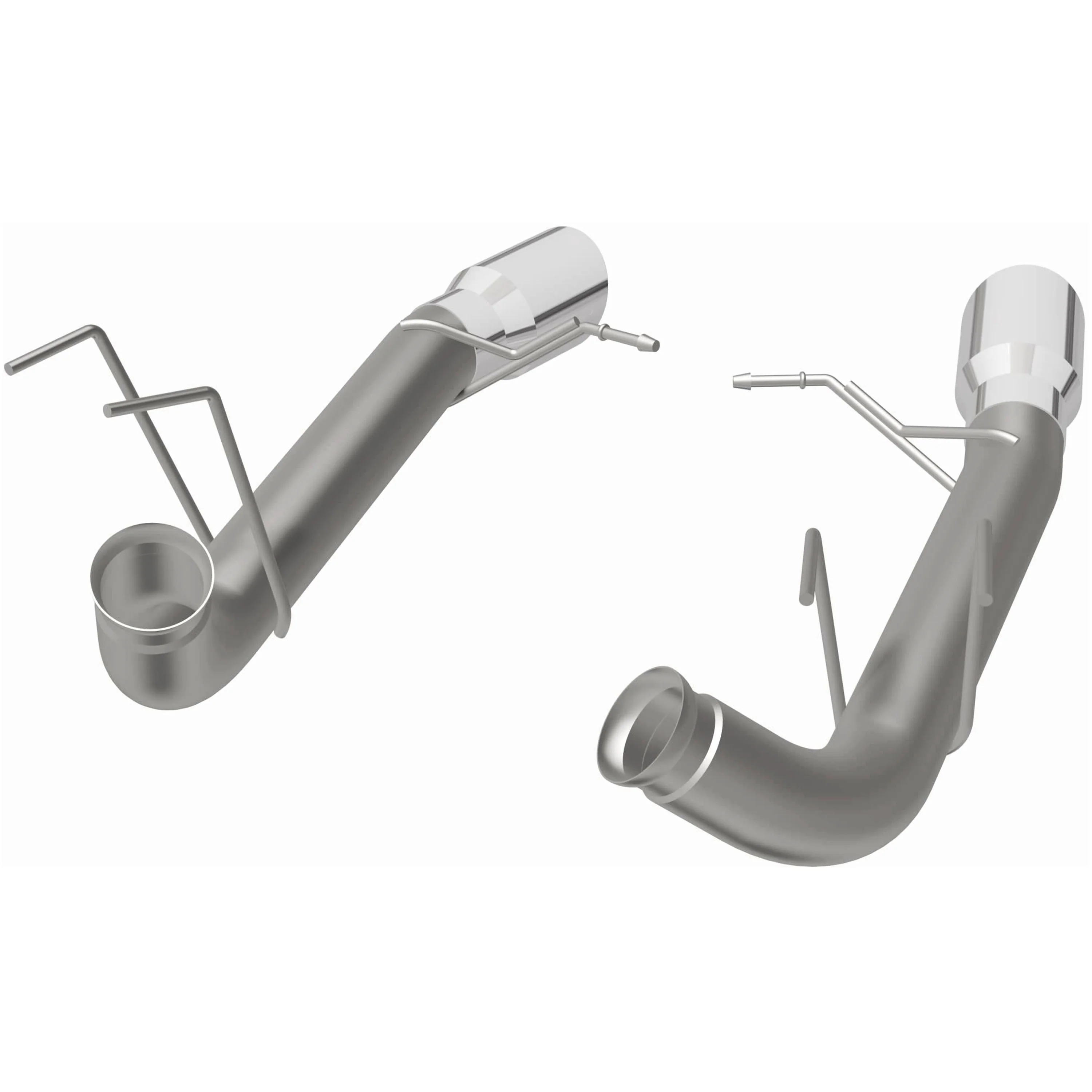 The MagnaFlow 2013-2014 Ford Mustang Race Series Axle-Back Performance Exhaust System 15152 doesn't leave any performance on the table with a race-ready, light weight, dyno-proven design ready to help your 5.0L 2013-2014 Ford Mustang take on any pretenders, whether on the track or the street. Exhaust kit 15152 is engineered to produce our powerful, resonant signature exhaust note at Very Aggressive exterior and Aggressive interior sound levels with an axle-back layout that replaces your vehicle's exhaust components from near the rear axle on back. Please check to ensure compliance with local noise regulations. This Ford Mustang exhaust kit features fast-flowing mandrel bent 3in. diameter main piping that ends in a Dual Split Rear exit with 4in. Polished Welded-On Double Wall Angle Cut Folded Edge tips. Extensive 3D scanning during development and the use of advanced CNC precision robotic manufacturing techniques ensures that 15152's direct-fit design fits so perfectly that you can easily install the system yourself. The durable, corrosion resistant stainless steel construction of exhaust system 15152 is backed by MagnaFlow's limited lifetime warranty.