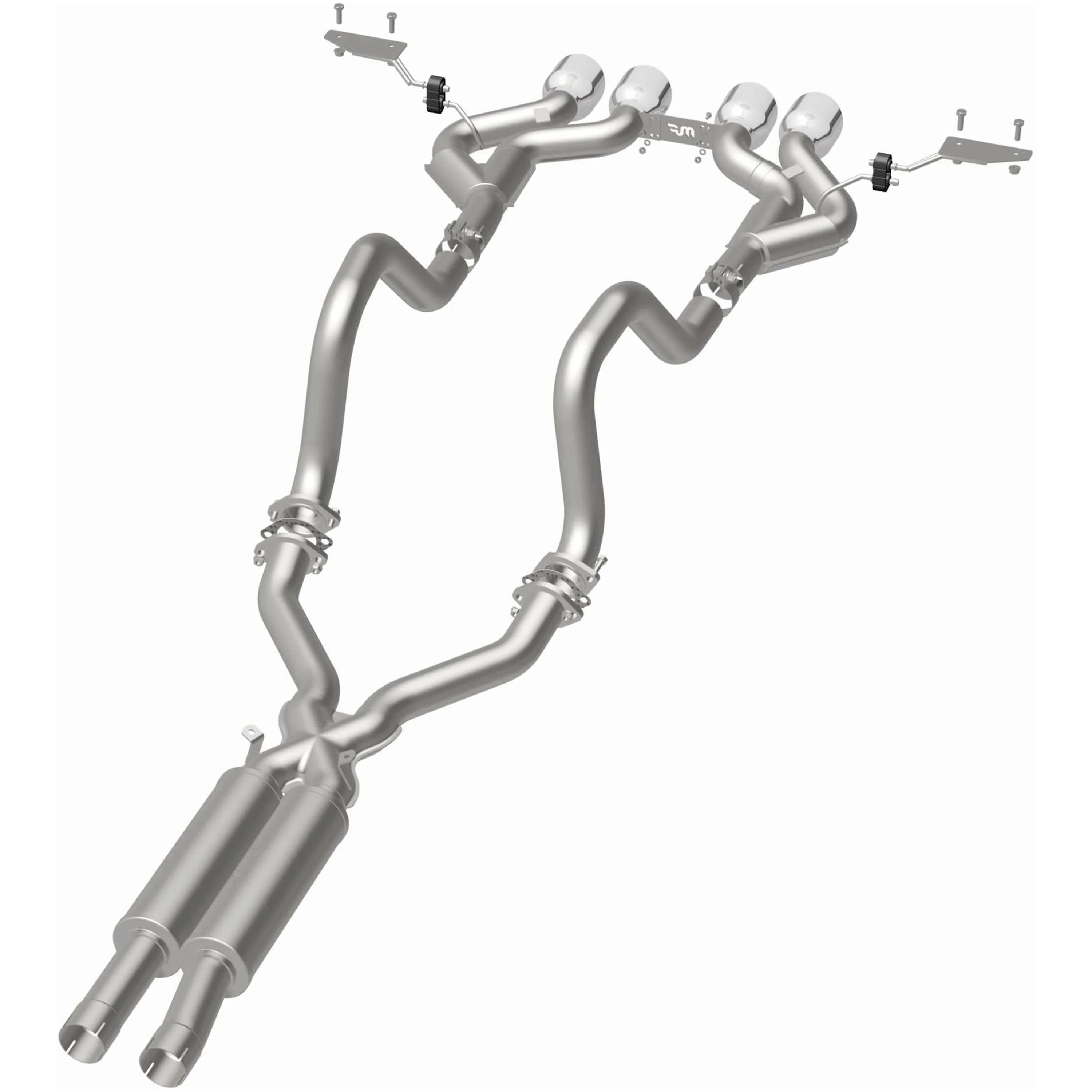 The MagnaFlow 2000-2004 Chevrolet Corvette Competition Series Cat-Back Performance Exhaust System brings an aggressive, attention-grabbing edge to the deep resonant exhaust note we're so well known for. This exhaust kit is designed to enhance your 5.7L 2000-2004 Chevrolet Corvette with dyno-proven performance made possible thanks to fast-flowing mandrel bent 2.5in. main piping and 2 Straight-Through mufflers ending in a Quad Center Rear exit with 4in. Polished Welded-On Double Wall Angle Cut Rolled Edge tips featuring a sporty finish. The exhaust system's cat-back layout replaces your ride's exhaust system from near the catalytic converter on back. Exhaust system 15281 is engineered to make your vehicle's engine produce Aggressive exterior and Moderate interior sound levels, befitting its competition-oriented design. 15281's direct-fit design makes installation a breeze thanks to the use of advanced 3D scanning techniques. This performance exhaust system is made of 100% durable and corrosion-resistant stainless steel and produced using CNC precision robotic manufacturing, all backed by MagnaFlow's limited lifetime warranty. Please check to ensure compliance with local noise regulations.