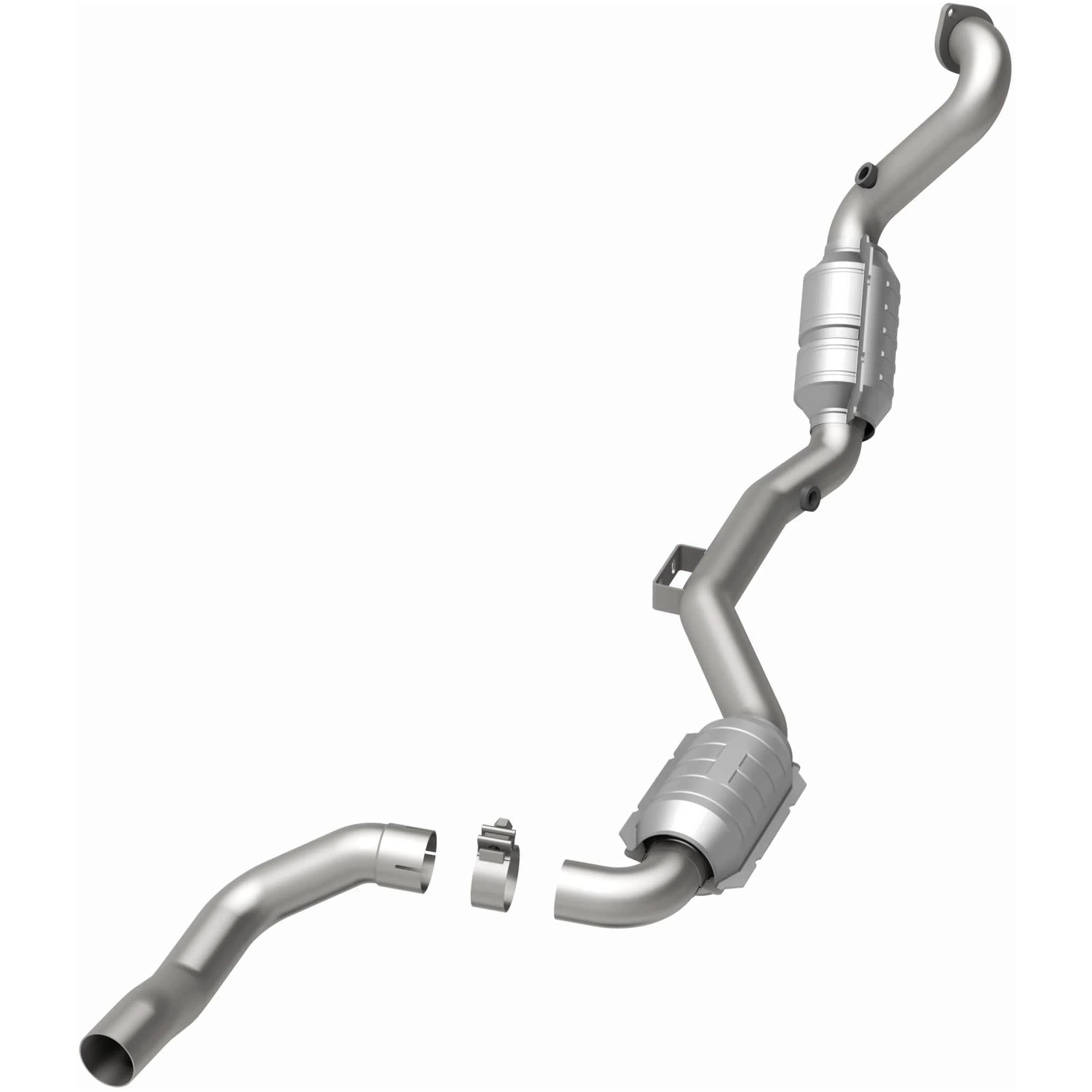 Keep the check engine light off with MagnaFlow California Grade CARB Compliant Direct-Fit Catalytic Converter 447276. With features including free-flowing mandrel-bent tubing and highly corrosion resistant stainless steel construction, easily install this converter yourself using the proper tools, no cutting or welding required. MagnaFlow's state-of-the-art metrology department uses the latest 3D scanning systems during research and development, so you can be confident that your new part will fit and function like the original equipment. By replicating the OE design, the single laser fusion weld greatly reduces the possibility of a leak, and our compact, low-mass design also allows for greater thermal efficiency. This Direct-Fit Catalytic Converter is designed to fit the 2000-2003 Mercedes-Benz ML55 AMG 5.5L. MagnaFlow 447276 includes (1) Torca Clamp and interchanges with OE parts 163 490 24 36, 163 490 24 36 80, 163 490 27 14, 163 490 27 14 80. This replacement part is designed to meet or exceed California Air Resource Board requirements, and has undergone additional testing to comply with CARB guidelines to allow for legal use in California and CARB restricted states, for the listed vehicles.